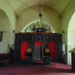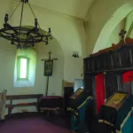 The church dedicated to the “Assumption” was made of stone, in Gothic style, with elements of the Moldavian style. The geometric plan is a Moldavian triconch plan, divided into narthex, altar with lateral semicircular apses. From the original painting is preserved a small fragment representing the face of a saint; this fragment is found in the holy altar above the proscomidiary.
