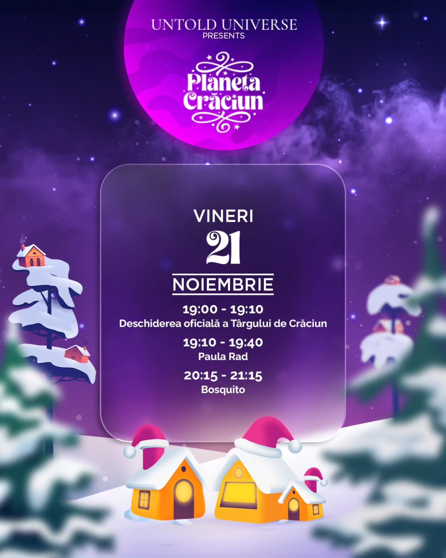 Evenimente în județul Cluj: „Târgul de Crăciun” (22 noiembrie 2025 – 1 ianuarie 2026) → Piața Unirii, Cluj-Napoca „Transylvania Mountain Festival” (18 – 23 noiembrie 2025)