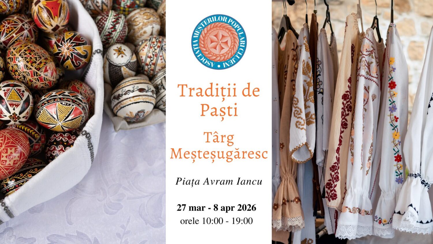 • Târgul „Tradiții de Paști” (27 martie – 8 aprilie 2026) → Piața Avram Iancu, Cluj-Napoca