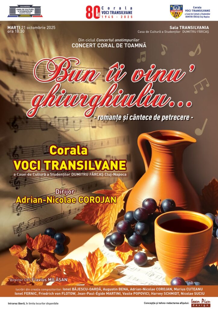- „Bun îi vinu’ ghiurghiuliu…” → Casa de Cultură a Studenților „Dumitru Fărcaș”, Sala Transilvania, Cluj-Napoca, ora 18.30