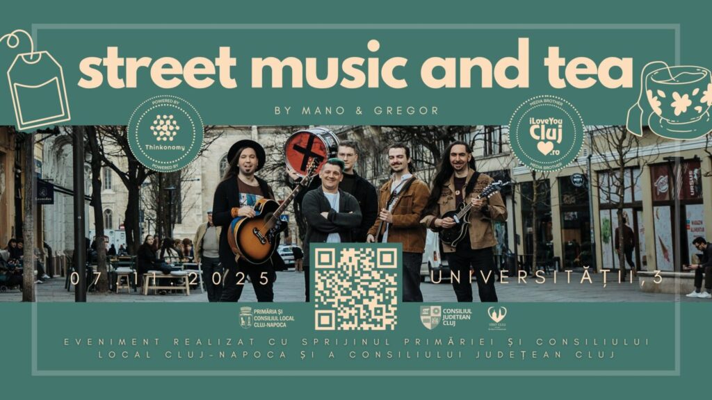 - „Street Music & Tea by Mano & Gregor” → Strada Universității, Cluj-Napoca, ora 19.00